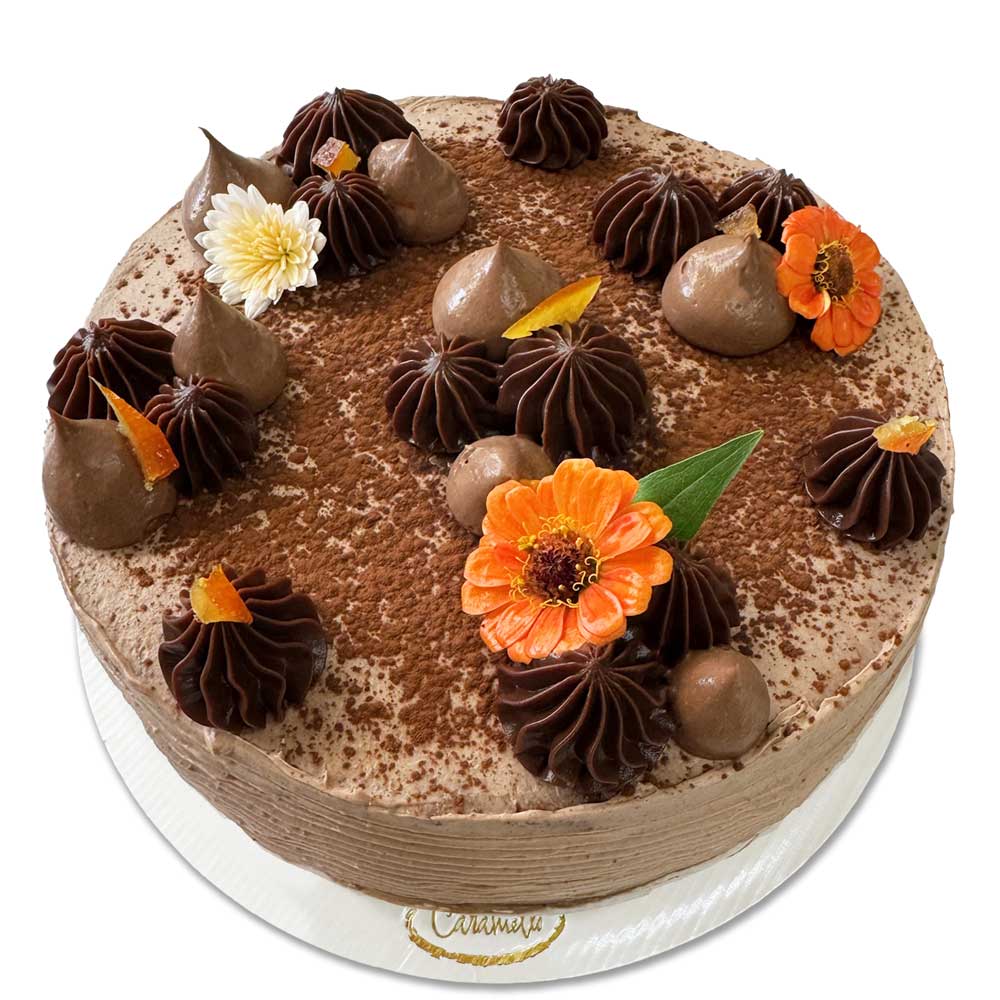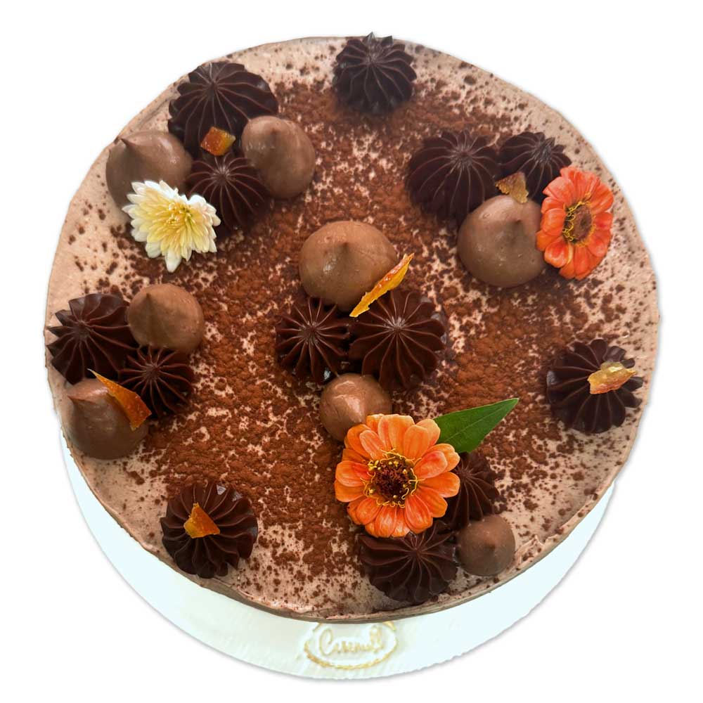 Diese elegante Torte besteht aus einem lockeren Schokoladen-Biskuitboden, verfeinert mit einer feinen Schokoladen-Creme und einem aromatischen Orangenmarmelade, das die natürliche Frische der Frucht hervorhebt. Der Kontrast zwischen der intensiven Süße des Kakaos und den spritzig-fruchtigen Noten der Orange schafft eine perfekte Balance zwischen Genuss und Leichtigkeit.